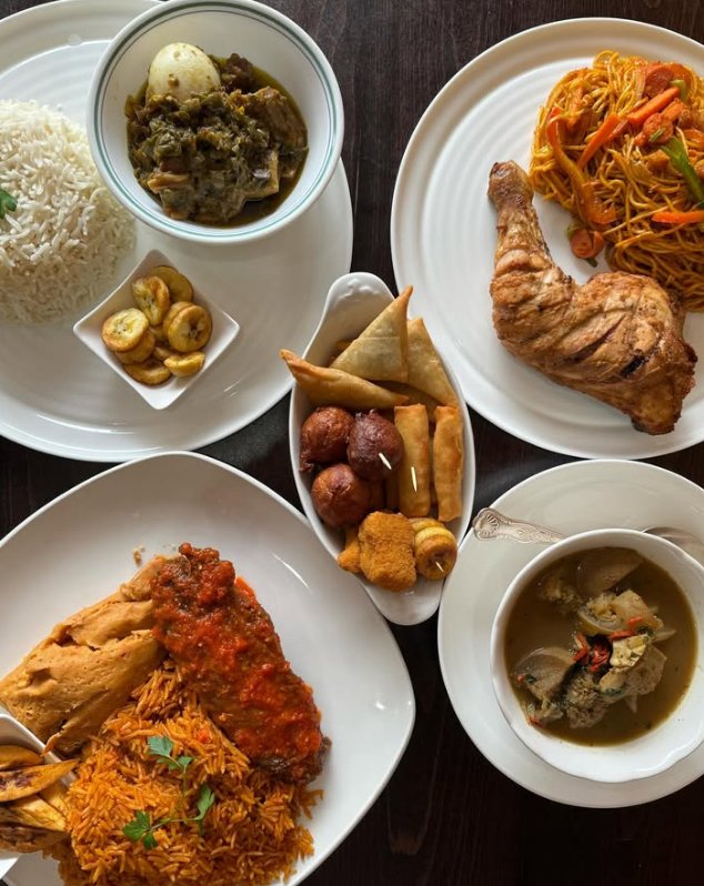 When dining at The Laughter Kitchen, you can expect a variety of African staples that highlight the diverse culinary heritage of the continent. Popular choices include jollof rice - a savoury tomato-based dish often served with grilled chicken or fried fish; egusi soup, made with melon seeds and rich spices, typically paired with pounded yam, and suya - a spicy grilled meat skewer seasoned with West African spices. Our other servings can include plantains, fufu, and comforting stews like peanut butter soup.